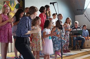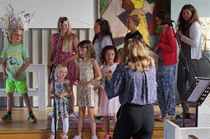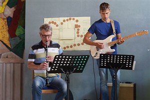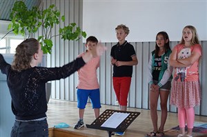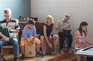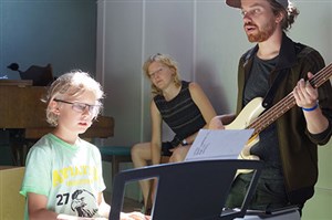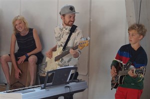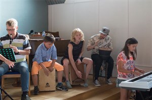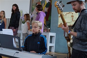 Under fyra dagar träffades ett gäng ungdomar för att skapa musik tillsammans. Det var full fart redan från början och man sjöng, dansade, spelade, kompade och till och med skrev en låt tillsammans. Ledarna spelade in låten och resultatet kan du höra här nedan om du klickar på länken. Strandgården som var arrangör för veckan som också avslutades med en välbesökt konsert.